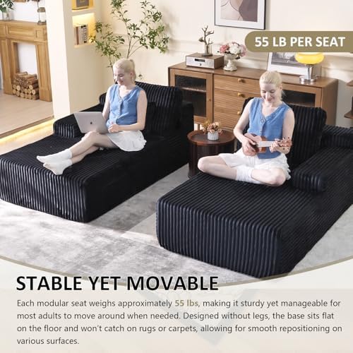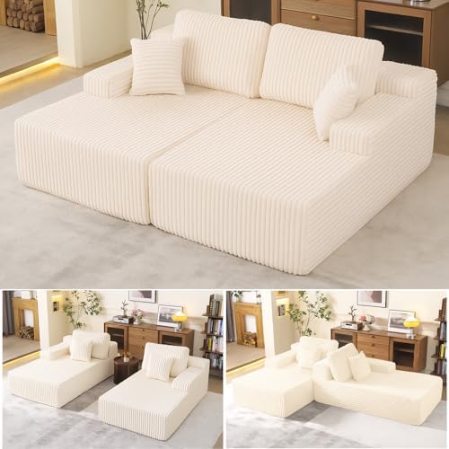 Oversized 79” Double Chaise Lounge Sofa Bed – Plush Upholstered Sleeper for Living Room or Bedroom – Deep Seat Corduroy