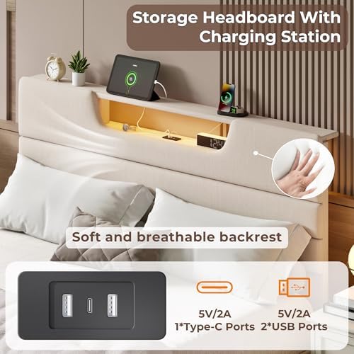 Stay connected effortlessly with the headboard’s built-in charging station, featuring 2 USB ports and 1 Type-C port. Charge your phone, tablet, or other devices without the hassle of tangled cords. Simply lean back, and keep your electronics within easy reach while relaxing in bed.